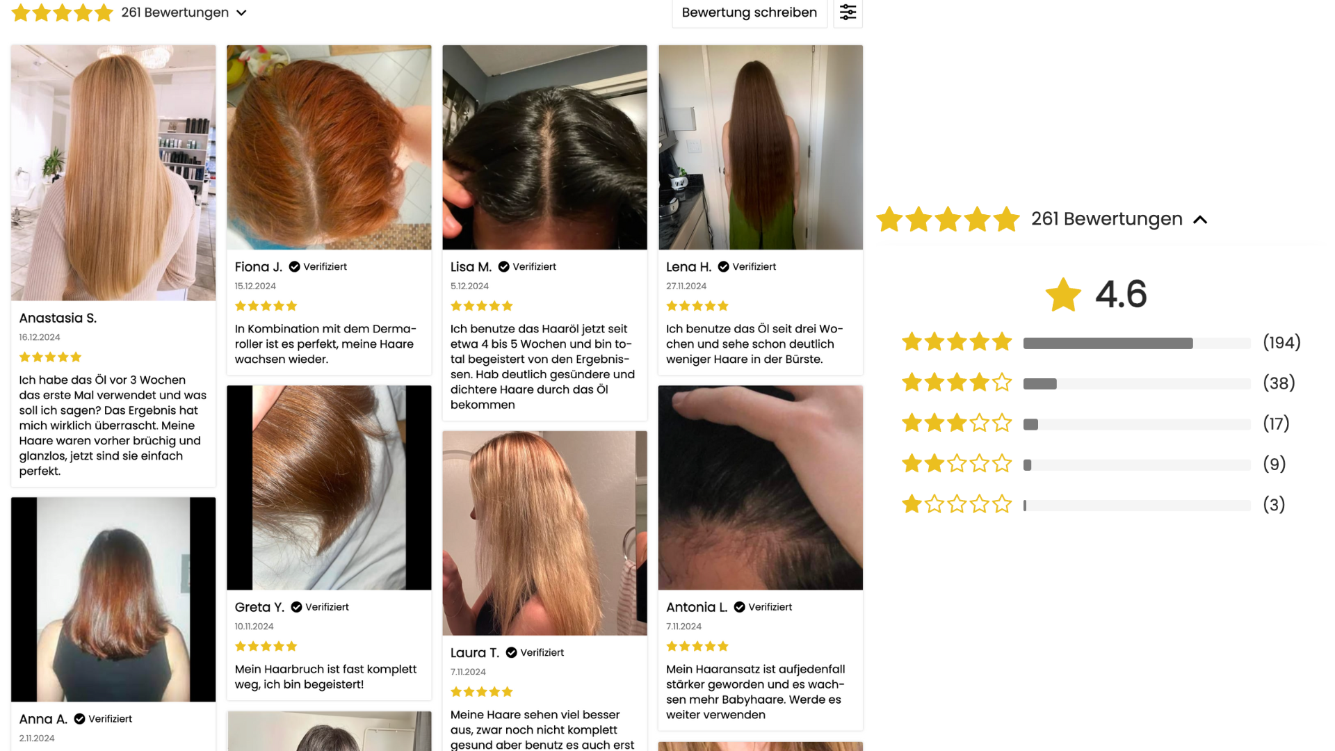 Die in diesem Artikel gezeigten Vorher-Nachher-Ergebnisse dienen ausschließlich zur Veranschaulichung. Individuelle Resultate können variieren und hängen von verschiedenen Faktoren wie Haartyp, Lebensstil und Anwendungsdauer ab. Wir können keine spezifischen Ergebnisse garantieren.
