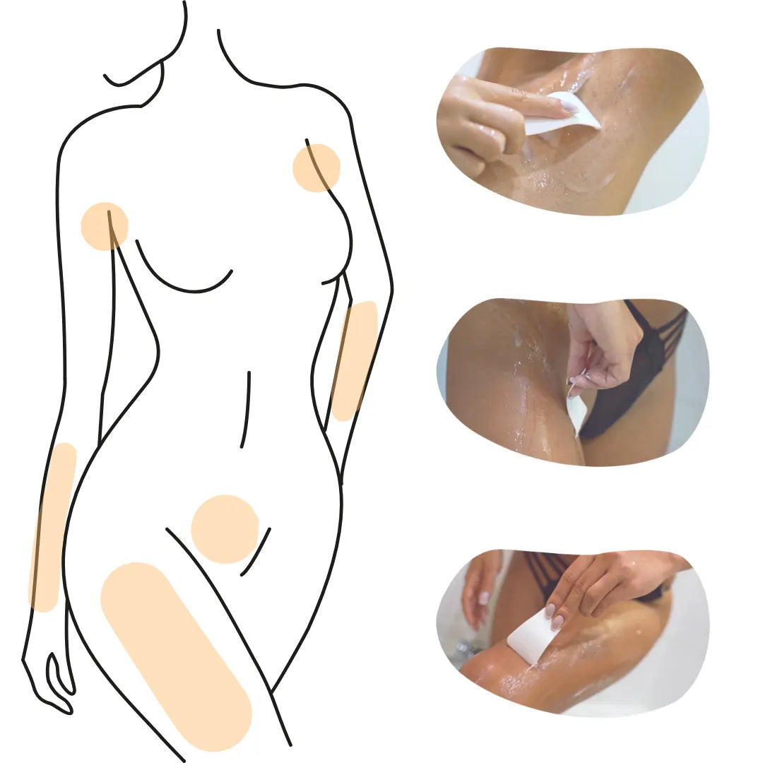 HairAway ist für Beine, Arme, Achseln und den Intimbereich geeignet. Für das Gesicht sollte es nur nach einem Verträglichkeits-Selbsttest angewendet werden.