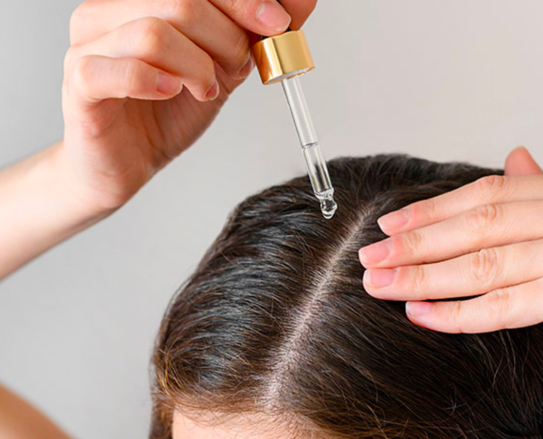 - Anwendung auf der Kopfhaut: Tragen Sie je nach Haardichte 2-5 Tropfen direkt auf die Kopfhaut oder in Ihre Handflächen auf.